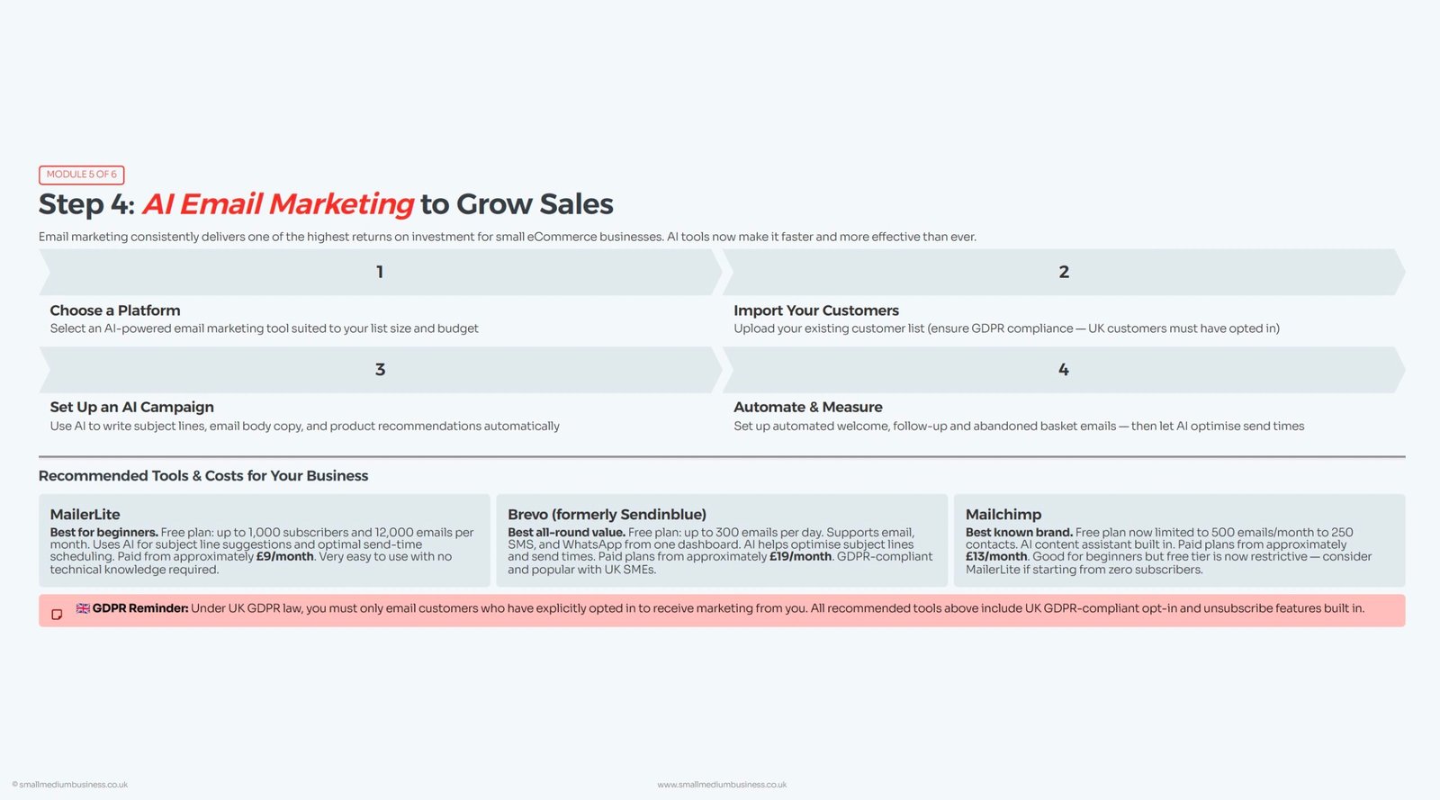 Small UK eCommerce businesses with 1–5 employees wanting to save time and money with AI