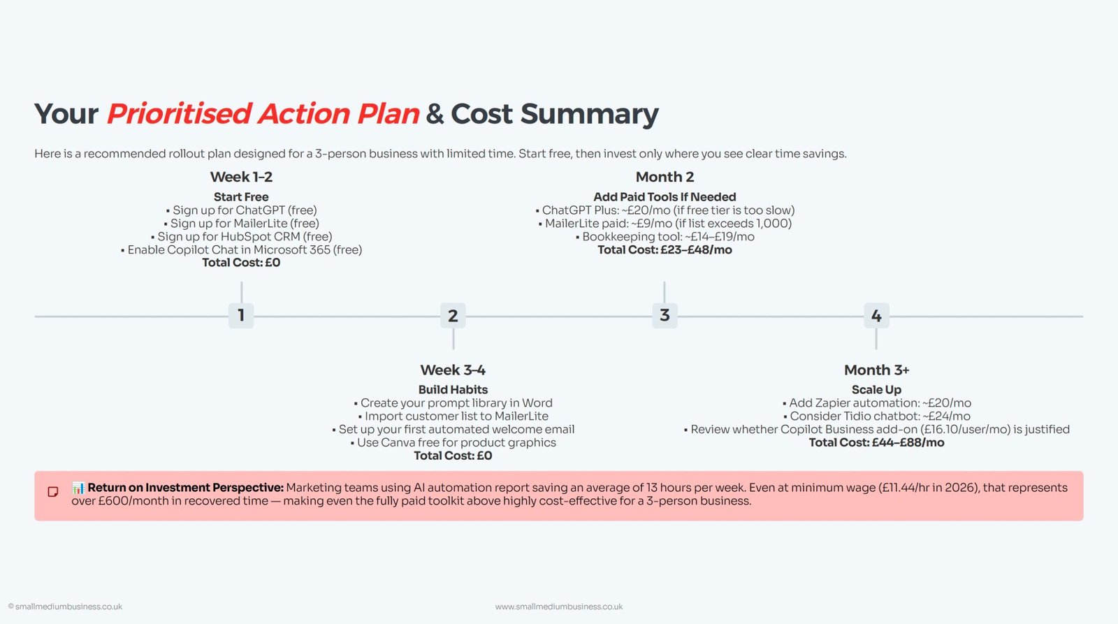 6 key areas where AI can immediately help — with costs in sterling and clear steps